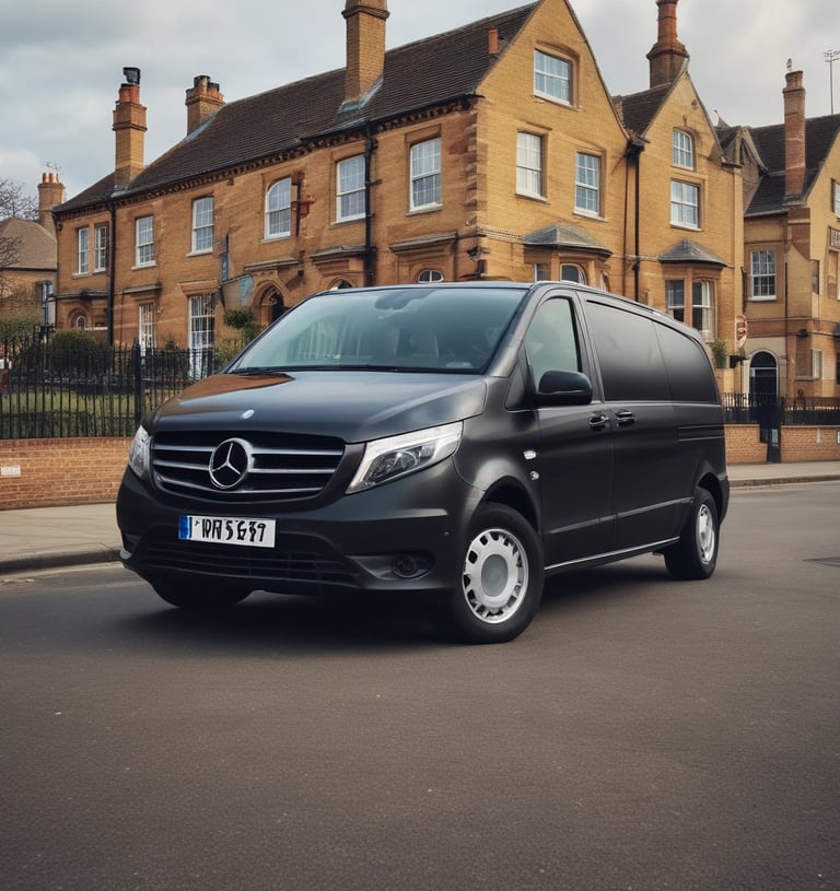 The Mercedes Benz Black Vito 8 passengers, it features stunning starlights that enhance your comfort and luxury while traveling.